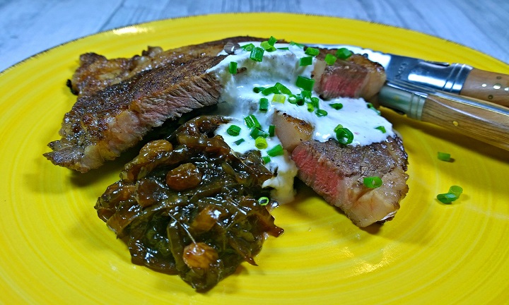 American Ribeye mit Zwiebelconfit und Meerrettichcreme