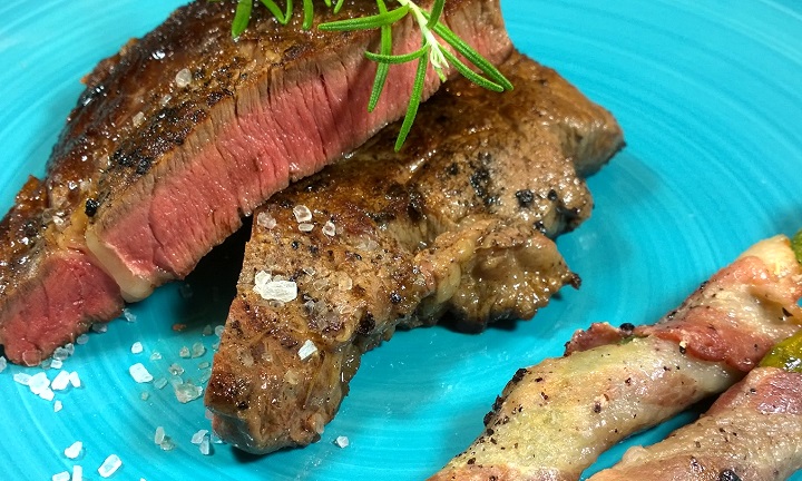 Die Steaks 1-2 Stunden vor Verarbeitung aus dem Kühlschrank nehmen und Raumtemperatur annehmen lassen. Den Backofen auf 100°C Ober/Unterhitze vorheizen.