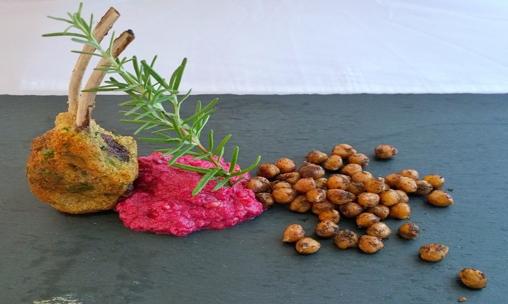 Lammchops mit dem Rote-Bete-Püree und den Gewürz-Kichererbsen anrichten, nach Belieben mit Kräutern garnieren und sofort servieren.
